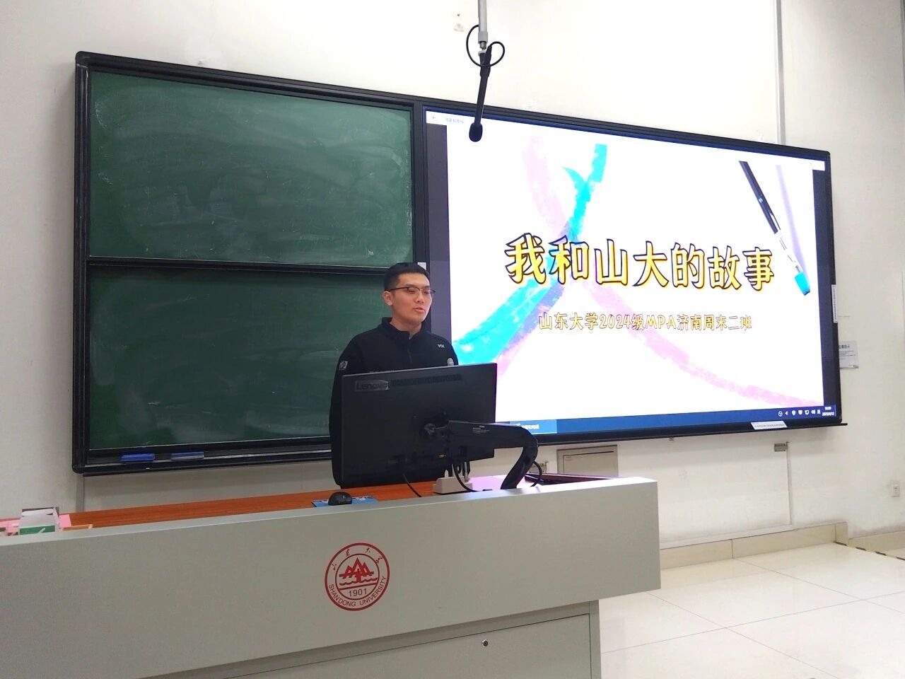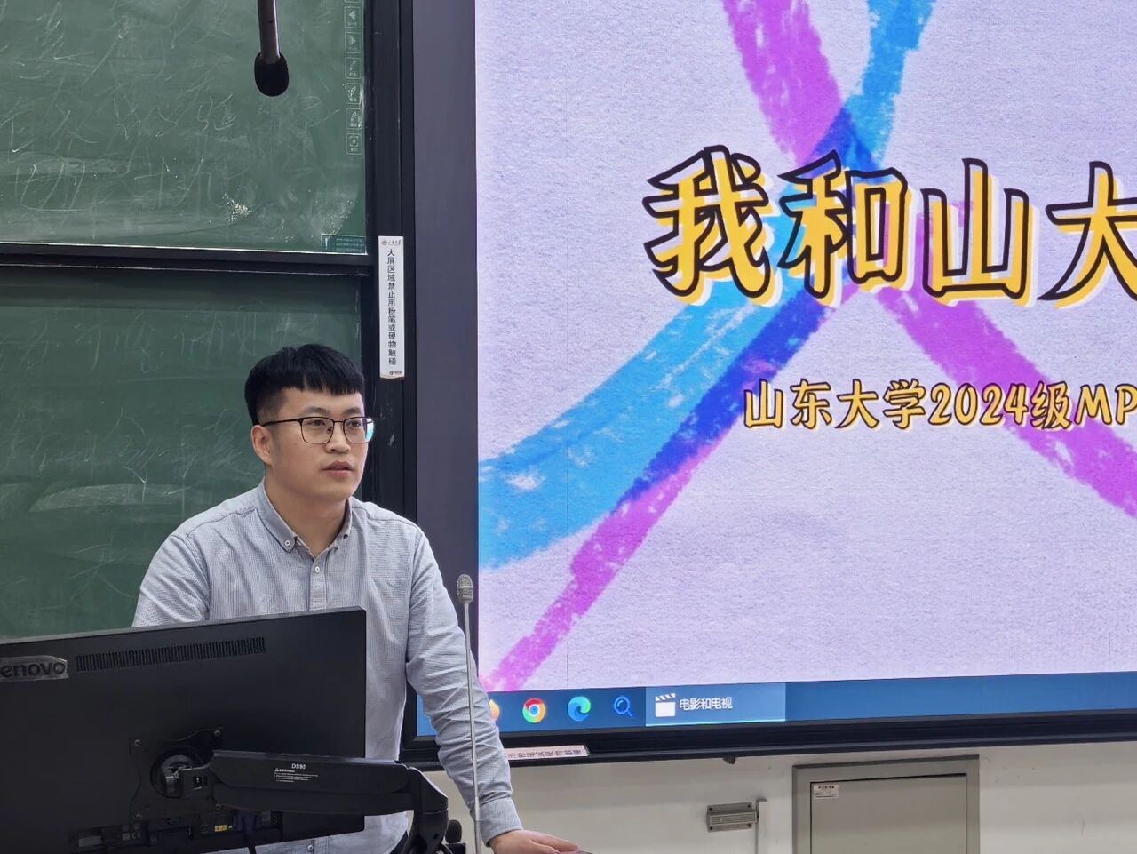 为进一步增强班级凝聚力,增进同窗情谊,近日,2024级MPA周末二班举办“我和山大的故事”主题班会。班主任费立国老师与全体同学齐聚一堂,共话山大记忆,畅谈成长感悟。班会由刘仁燚同学主持,现场氛围温馨而热烈。班长赵翰英首先介绍了班级整体情况,并分享了自己与山大的难忘故事。随后,活动进入精彩的故事分享环节,董经伟、宰德彪、李宏浙、牛文浩、丁子浩、张颂涵、孙凯丽、陈文韬、刘仁燚等9位同学依次登台,或深情回忆求学点滴,或真挚表达对学校的感恩之情。一个个平凡却动人的故事,让在场同学产生了强烈共鸣,大家纷纷表示,将立足自身岗位,以实干践行初心,以担当诠释使命,在各自的工作领域中发光发热,用实际行动为山大增光添彩。