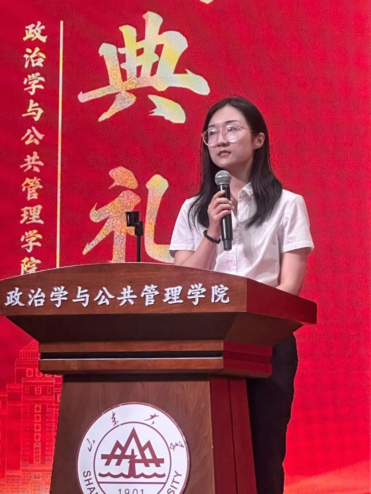 大家好!我是2025级研究生乔巧,作为新生代表站在这里发言,我深感荣幸,更深怀感恩。首先,请允许我代表2025级 MPA 研究生向出席典礼的各位领导、老师致以崇高的敬意与诚挚的感谢!